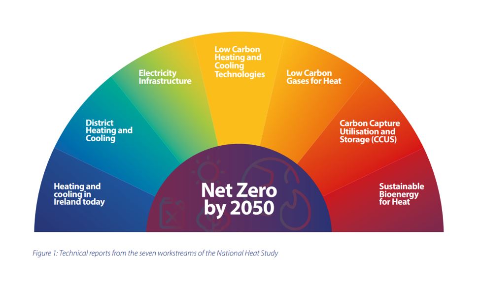 The National Heat Study, published by the Sustainable Energy Authority of Ireland (SEAI) in February 2022, is a comprehensive analysis of the options for reaching net zero emissions from the heating sector by 2050 and contains detailed analysis which will now facilitate the development of options, policies, and measures to decarbonise the heating and cooling sectors to 2050.